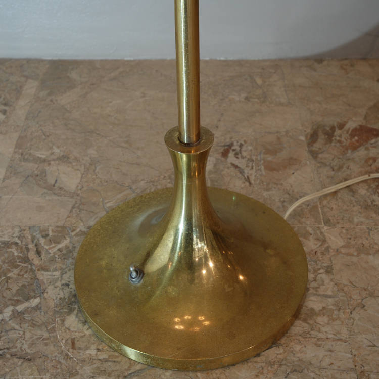 Elégant lampadaire, fût en laiton, 6 bras de lumière opaline blanche