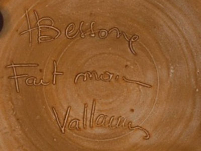 Lampe Marius Bessone, en céramique émaillée à décor stylisé en relief. Signée sous la base
