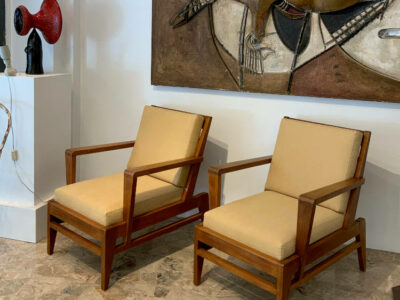 Paire de superbes fauteuils en chêne par René Gabriel. Ils sont en chêne et datent de 1946