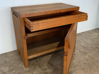 Meuble bahut 1 porte, 1 tiroir modèle R09 en orme massif par Pierre Chapo. Date des années 1960